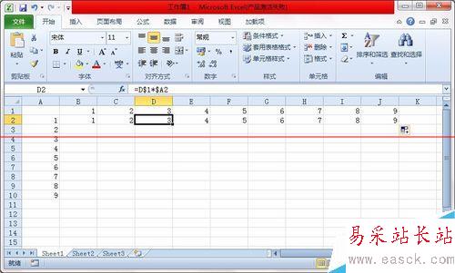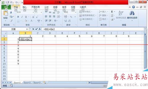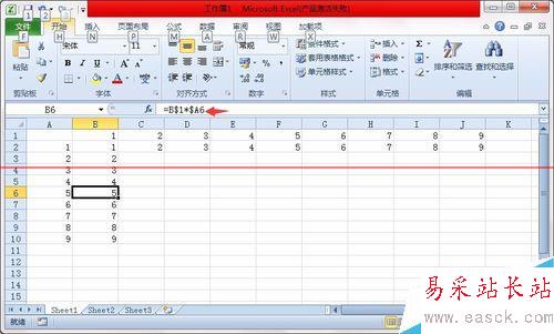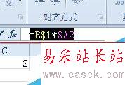 4、"=B$1*$A1",這個公式用到了混合引用,既有相對引用,又有絕對引用。