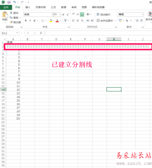 返回EXCEL表格,已建立分割線。