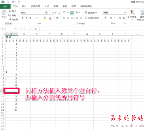 同樣的方法插入第三行,并在第一列輸入所用分割線符號”~“。