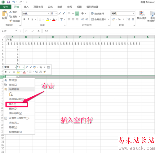 右擊需要插入分割線的行,插入空白行。