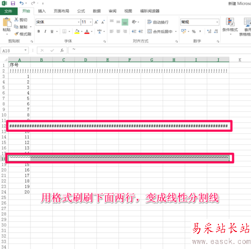 選中第一行的分割線,雙擊”開始“下的”格式刷“。