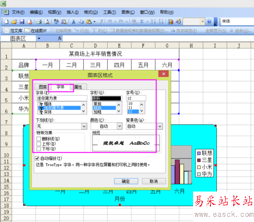 8、我們再來改變一下圖表的字體,也是雙擊圖表的空白區域,選擇字體,設置字體的樣式。
