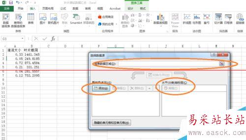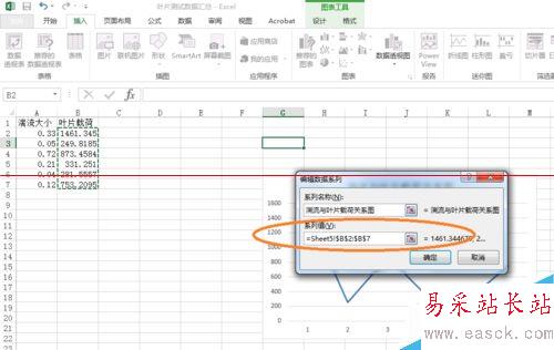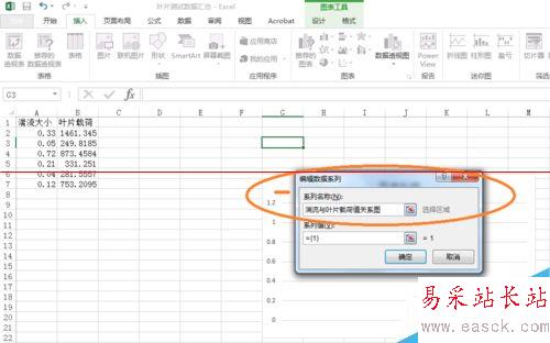 4、點擊“添加”跳出系列名稱和選擇數據對話框,在系列名稱輸入你想要的名字,例如“湍流與葉片載荷關系”,數據我們選擇“葉片載荷列",此為Y軸數值
