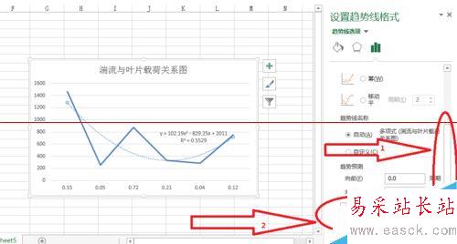 先在已經進入大數據時代,數據分析變的越來越重要,excel中添加的趨勢線是圖表中的一種擴展線,它可以直觀的看出數據的趨勢,根據實際數據預測未來數據,處理幾百萬條數據的時候效果尤為突出,還可以添加公式,給人最直觀的結論,以下為效果圖,折線為數據顯示,圓弧線為趨勢線,本數據以風能測試數據為例