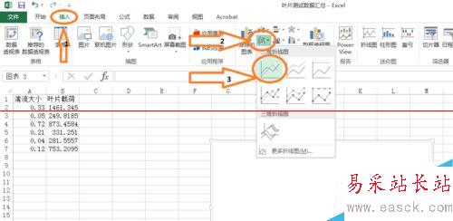 2、按照圖片中的順序,依次點擊插入-折線圖-選擇折線圖樣式,本人習慣用第一個,可以在以后的工作中選擇自己喜歡的格式