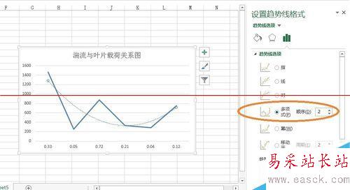 8、excel會根據你的數值,給出推薦的公式,我們可以根據曲線的走向選擇線性-指數--多項式等,這里我們選擇多項式