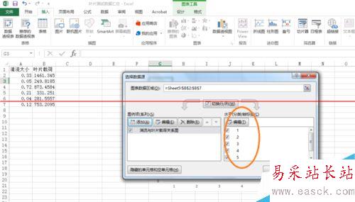 5、完成第4步驟,我們開始編輯x軸數據,單擊如圖所示的“編輯”