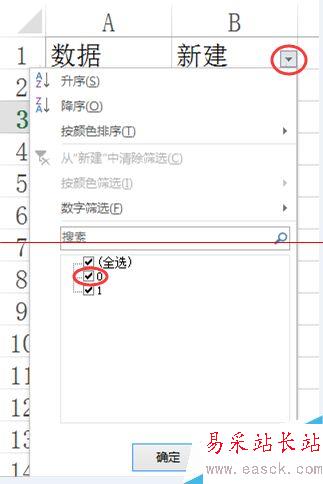 單擊 判斷列 右下角 2、取消 0 的勾選