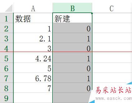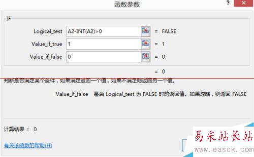 =IF ( A2-INT(A2)>0 , 1, 0) A2 判斷對象數據