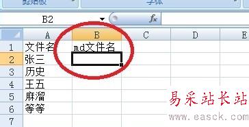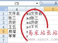 2、在文件名的右邊一列輸入=“md” &a1,記住&前有一個空格,然后回車