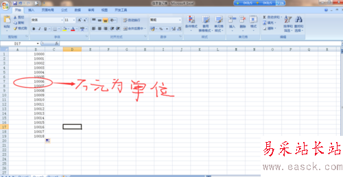5、現(xiàn)在就和大家分享這個技巧,首先我們選中需要變?yōu)槿f元的單位格
