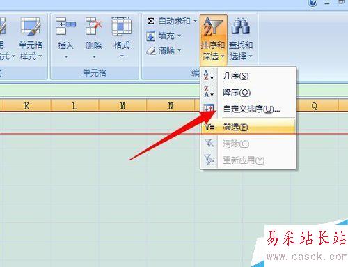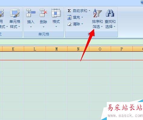 3、將需要添加表頭的區域選上之后單擊表格右側的“排序和篩選”按鈕。