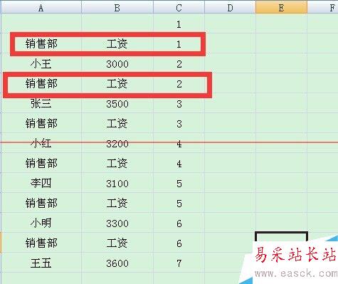 7、單擊確定按鈕之后會回到如圖所示,此時我們可以看到工資條上已經成功添加表頭了。我們手動輸入的數字我們此時可以將他們刪除,刪除了也不會影響工資條表頭。