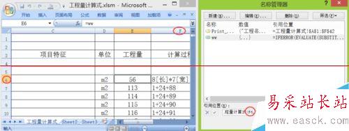 注意了工程量計算式!是我的工作表,F6為要相對引用,且為計算公式位置,這個位置可以修改