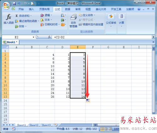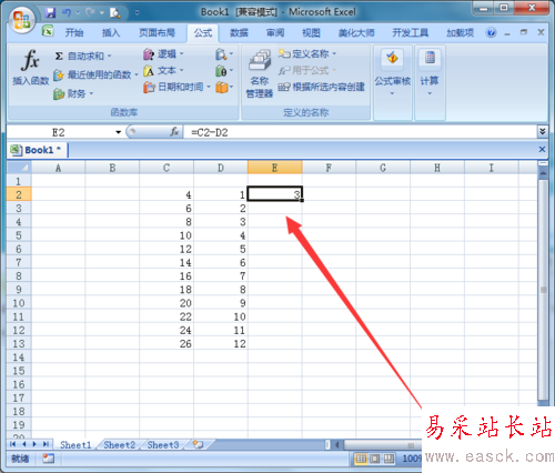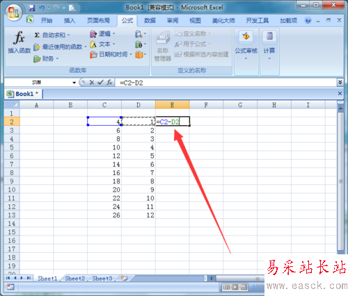 在數據表中直接在單元格內輸入=號,單擊單擊C2大的數字“減—”去D2小的數字,直接按“Enter”回車鍵。會顯示3,在用自動填充功能向下拉就可以完成減法。