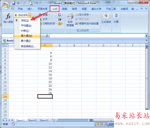 在默認安裝的execl軟件里,單擊公式,有一排的工具是直接展示在菜單列表的下方的。然后找到類似于向右的M,旁邊的倒三角位置。