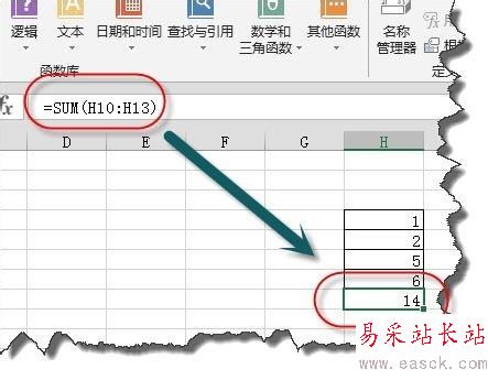 如上圖所示,當我們選擇所有數據進行求和時,我們選擇”公式“選項卡下面的”求和“按鈕,就可以快速求和。