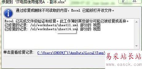 6、此時最重要的步驟,要對文檔保存,點擊“是”,選擇路徑保存即可。打開修復后的文檔,不彈出任何信息,問題解決。