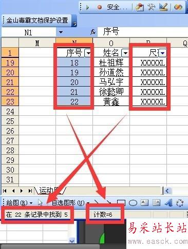 6、計數和篩選對應的結果分別顯示在界面的右下方和左下方 計數執行的是所見即所得 篩選執行的也是所見即所得