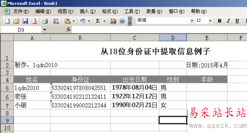 我們啟動Excel2003,錄入需要提取信息的身份證號碼。