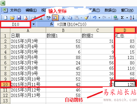 比如我在某個(gè)單元格記錄的數(shù)據(jù)很重要,但是由于數(shù)據(jù)太多不知道在哪里,那么我們可以選擇在記錄的時(shí)候記住這個(gè)單元格的“坐標(biāo)”,當(dāng)你要找這個(gè)資料的時(shí)候直接在excel的“名稱(chēng)框”中輸入該坐標(biāo)就會(huì)自動(dòng)跳轉(zhuǎn)到該單元格中。如圖所示: