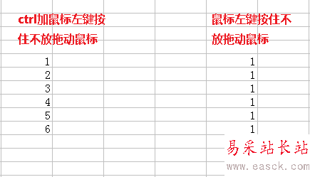 這是一個(gè)比較基礎(chǔ)的快捷方式,很多朋友都會(huì)把這兩種功能混淆,其實(shí)很簡(jiǎn)單。如果你需要有順序的列表,比如123456,那么只需要在任一單元格中輸入“1”,然后把鼠標(biāo)移動(dòng)到該單元格的右下角,待指針顯示成一個(gè)黑色的“+”時(shí),點(diǎn)擊左鍵不放,再按住鍵盤(pán)上的“ctrl”不放,鼠標(biāo)垂直往下移動(dòng)到第6個(gè)單元格,然后松開(kāi)鼠標(biāo)左鍵就完成了有序的編號(hào)了。