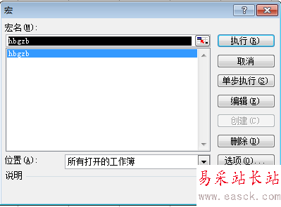 按ALT+F8打開宏對話框窗口,鼠標單擊執(zhí)行hbgzb宏。