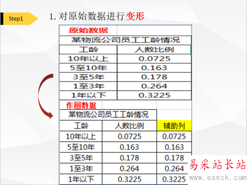 思路:添加輔助列條形圖形成分類間隔標(biāo)簽