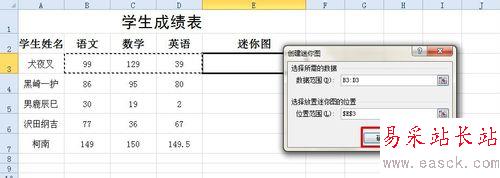 3、在彈出的“創建迷你圖”對話框中,選擇數據范圍,此處為從單元格B3拖拽至單元格D3,單擊“確定”按鈕,如圖。