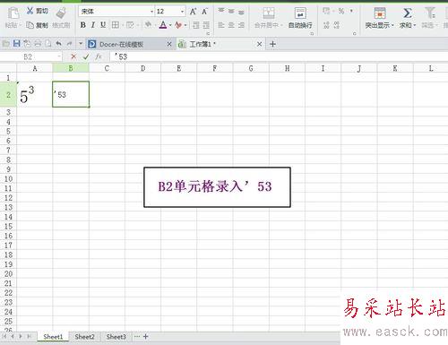 在EXCELB1單元格錄入“53