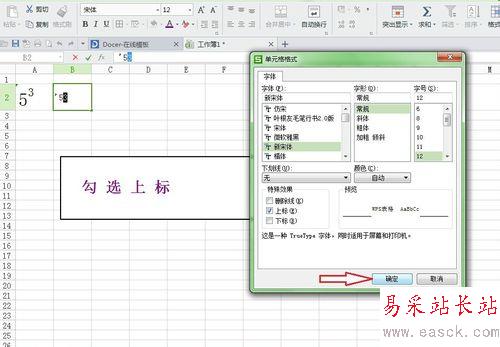 在單元格格式中勾選“上標”;