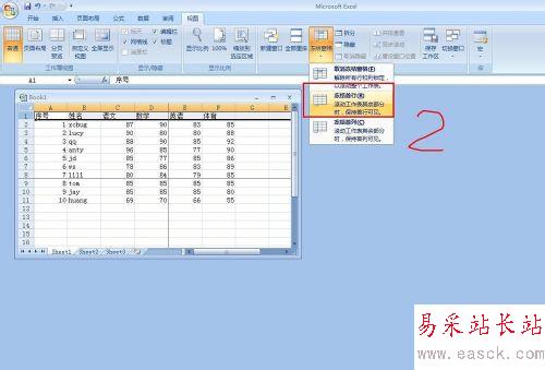 1、選中第1行,然后單擊“視圖”選項(xiàng)卡,在“窗口”組中點(diǎn)擊“凍結(jié)窗格”按鈕,接著選擇“凍結(jié)拆分窗格”。