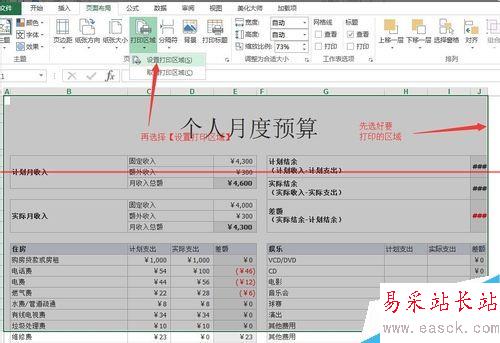 4、這時(shí)我們就多認(rèn)識(shí)了【打印區(qū)域】這一個(gè)功能,以后用到這功能的時(shí)候可以先選定好要打印的區(qū)域,然后同上述方法選擇【設(shè)置打印區(qū)域】,這樣就可以打印自己需要的部分了。