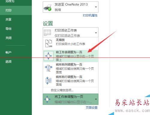 6、補(bǔ)充一點(diǎn):在沒(méi)有設(shè)置打印區(qū)域的情況下,如果表格內(nèi)容比較多,可以在打印預(yù)覽窗口中設(shè)置【將工作表調(diào)整為一頁(yè)】,這樣可以節(jié)約紙張,如果設(shè)置了打印區(qū)域也是不能全部打印的。