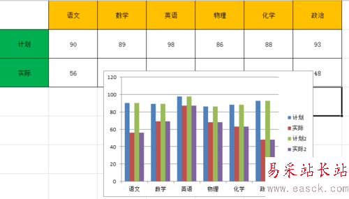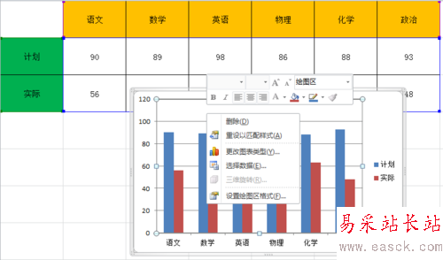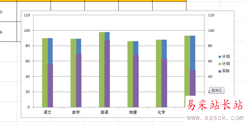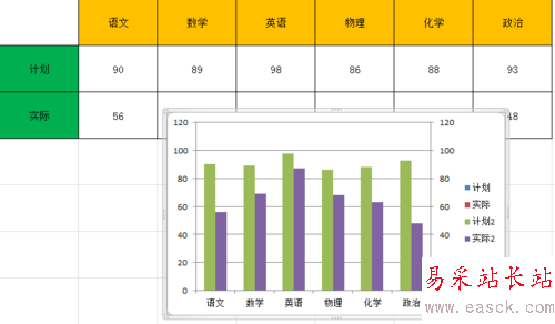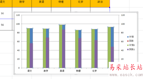第六步,將圖例名“計劃2”改成“計劃”;"計劃"改成“差額”;“實際2”改成“實際”。并且將原來的“實際”圖例(只是圖例而已)刪除。