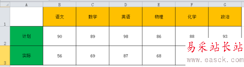第二步,就是在100的范圍內,我們虛擬一下他的預算分數和實際分數,但是我們不必要算出他們的差額,這是小編的獨特之處。
