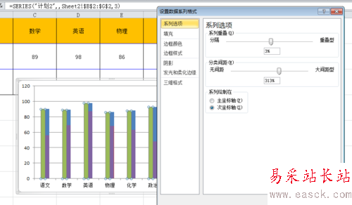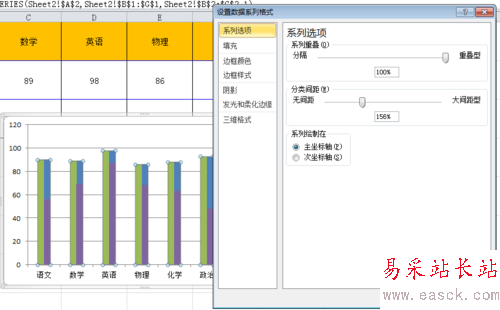 第五步,我們通過調整系列的間距、重疊來達到我們的效果。