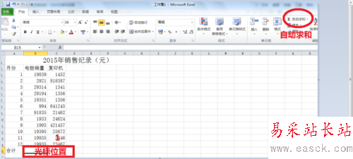 自動求和,在同一列數字中,我們要得到總合計,直接點自動求和按鈕即可。