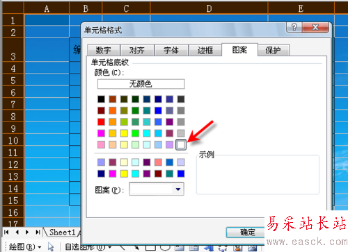 4、在“單元格格式”對話框中找到“圖案”選項卡,將底紋顏色改成白色。