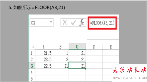 5. 如圖所示=FLOOR(A3,21)