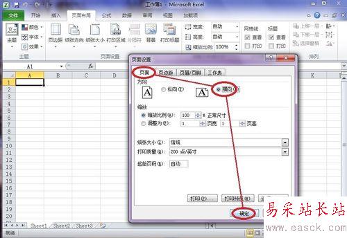3、在頁面設(shè)置對話框中點擊“頁面”,再勾選”縱向“或”橫向“打印,最后點擊”確定“。
