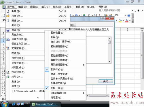 4、在任何一個菜單欄命令或工具欄按鈕上按下鼠標右鍵會有豐富的快捷菜單,可以進行設置。