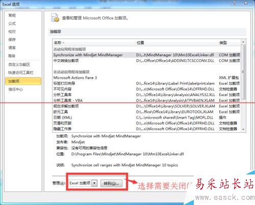 5、由于我安裝了易永寶和MindManager軟件,在所以這里出現了這兩個加載項。