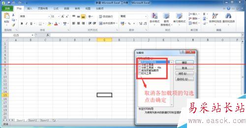 6、將需要取消的加載項前的勾點掉,點擊確定。