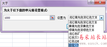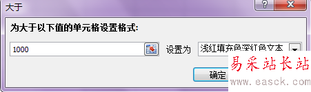 4、在“為大于以下值的單元格設置格式”框中輸入“1000”。