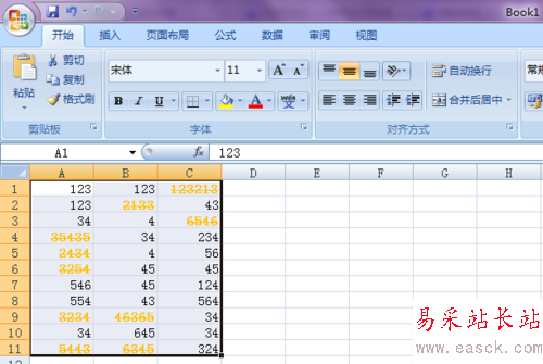 1、以下圖工作表為例,要求將表格中大于1000的數據用黃色、加粗、加刪除線的格式標出。