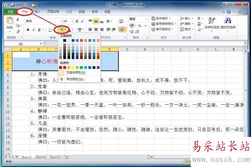 3、在字體顏色的下拉框中,我們可以看到里面有許多種顏色可供選擇,點(diǎn)擊你最喜歡的顏色。就可以看到如下圖的效果(是不是好看多了):