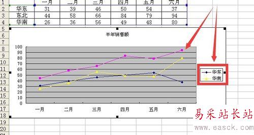 4、按下delete鍵 然后查看粉色的圖例項(xiàng)已經(jīng)被刪除 但是粉色的折線圖系列依然在圖表繪圖區(qū)存在