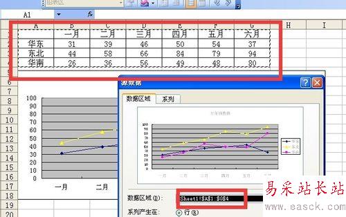 7、在圖表上單擊右鍵或者點(diǎn)擊菜單欄 圖表 數(shù)據(jù)源 彈出數(shù)據(jù)源對(duì)話框
