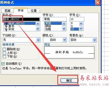 4、字體 點(diǎn)選楷體 然后點(diǎn)擊確定